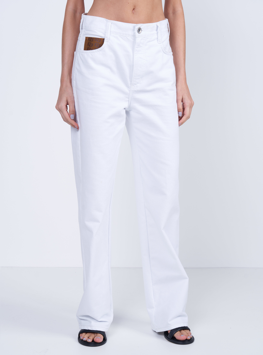 Calça apresenta shape reto e modelagem slim. Peça possui cintura baixa, cós duplo com passantes, abertura frontal com zíper e botão interno, bolsos facas dianteiros, bolsos traseiro, bolsos retos com lapelas, corpo em corte reto, aplicação de tag metalizada com logo e barra inferior com acabamento simples.