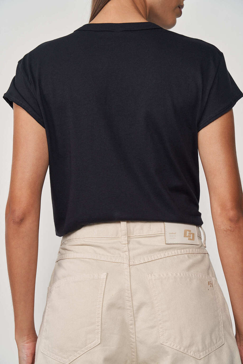 Camiseta: Manga curta, corte clássico, detalhe em paetê na parte frontal.