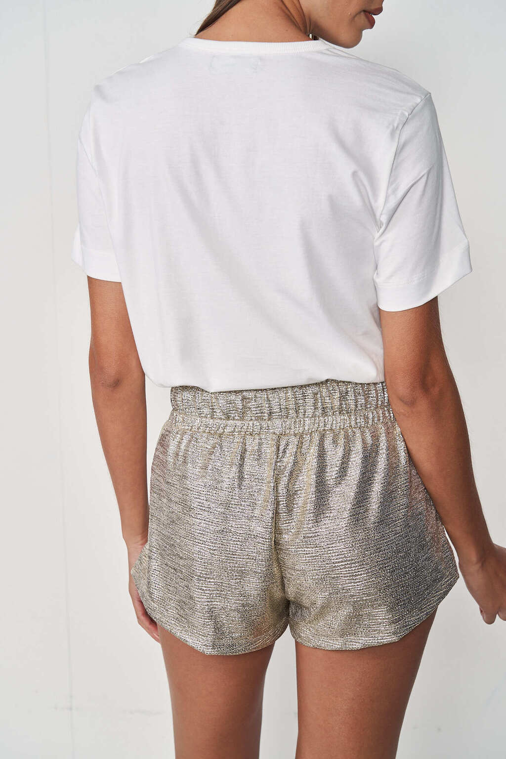 Para um toque moderno, experimente usar a camiseta com shorts de cintura alta e acessórios coloridos.