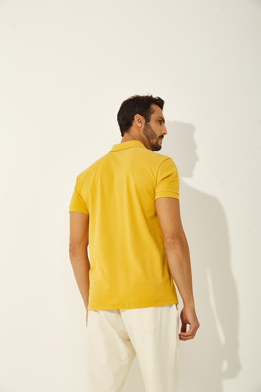 Camisa apresenta shape slim com modelagem de alfaitaria. A peça possui gola polo, peitilho com botões, mangas curtas e bordado de logo na altura do peito.