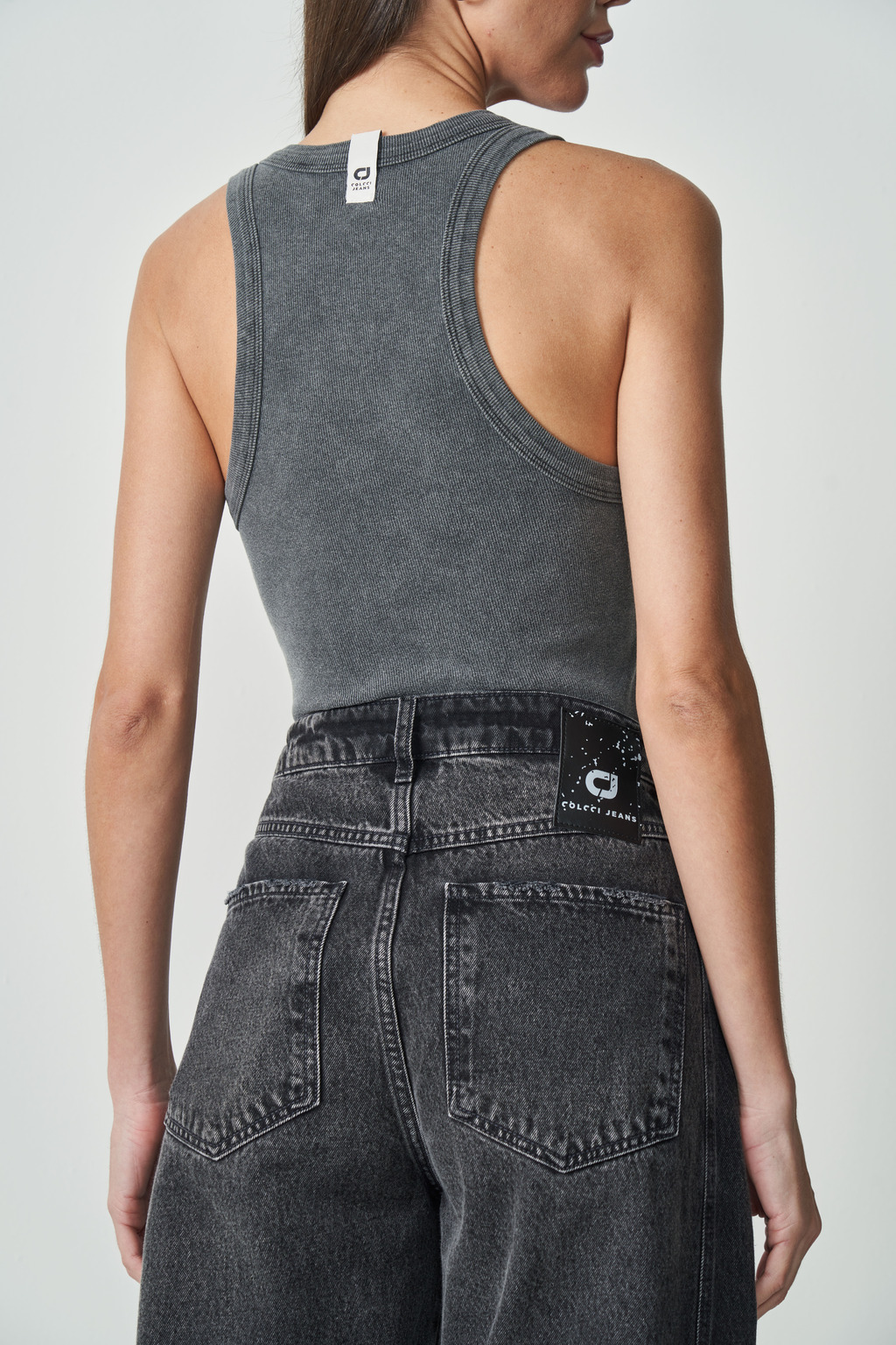 Regata com decote redondo, tecido canelado e bordado da logo da marca.