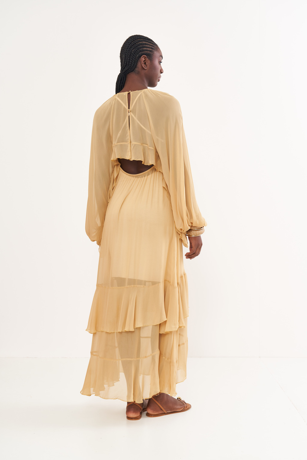 Peça/Look: Vestido Longo Fluido Com Babados – RIVIERA